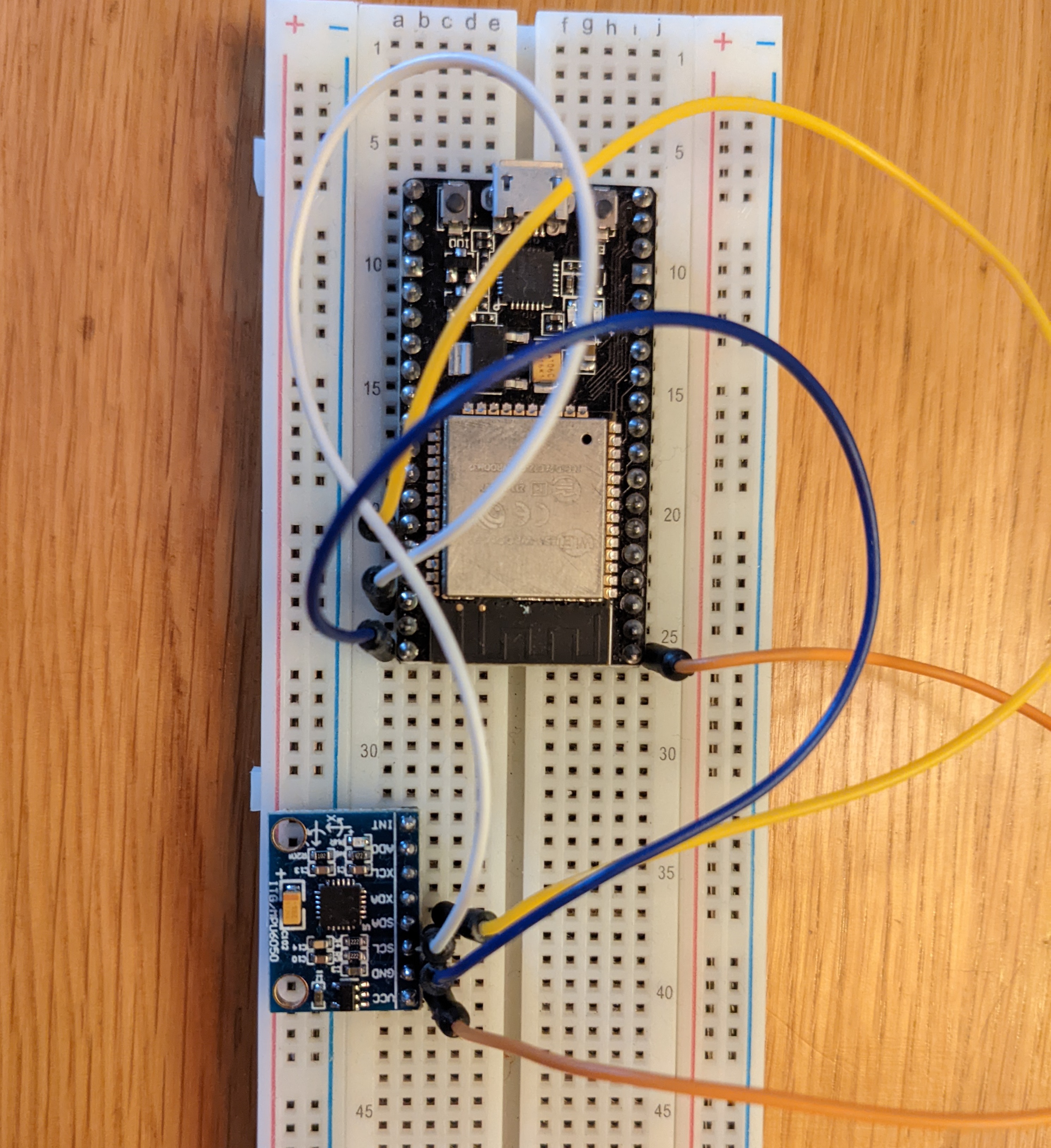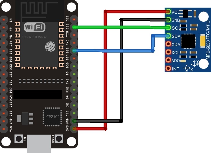 The communication between the ESP32 board and the MPU module is done through I2C (Inter-Integrated Circuit).