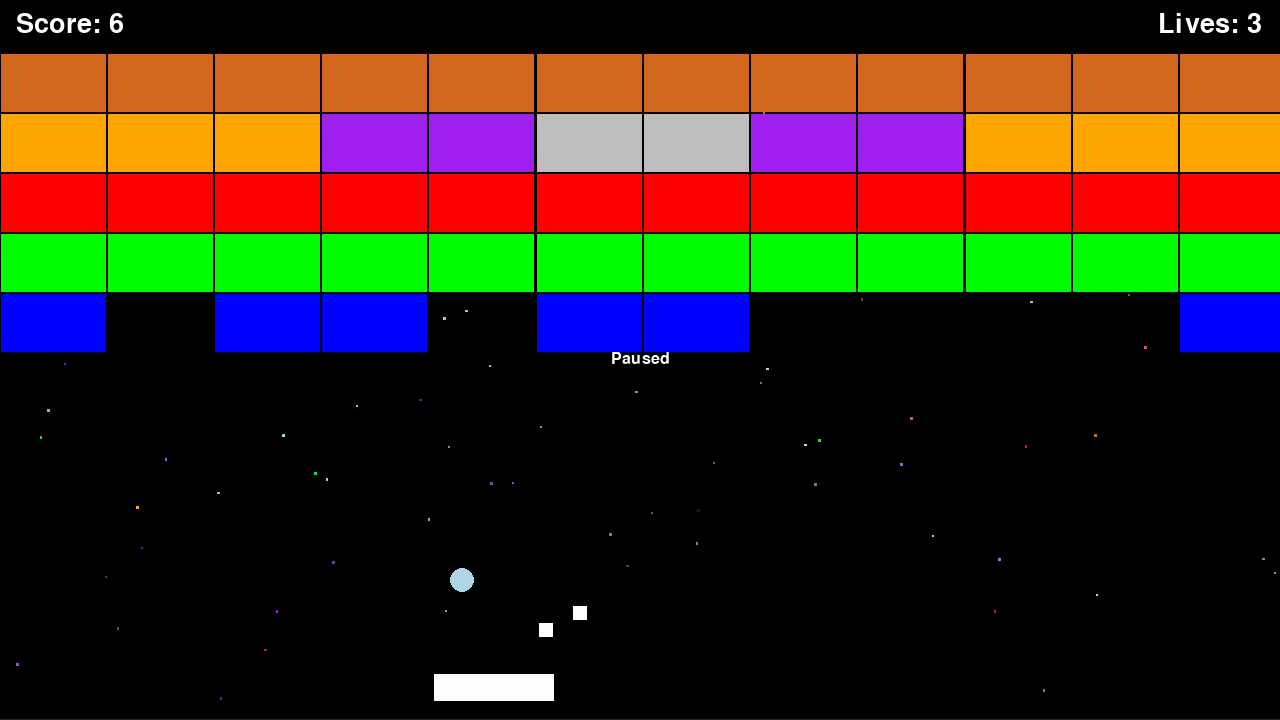 Scop și logică de progres: Jucătorul începe partida cu 3 vieți. De fiecare dată când bila ajunge sub paletă, o viață este pierdută, iar bila și paleta se resetează în pozițiile inițiale. La distrugerea unei cărămizi, se adaugă un punct. Jocul se termină când jucătorul pierde toate viețile sau când sunt distruse toate cărămizile de pe ecran.