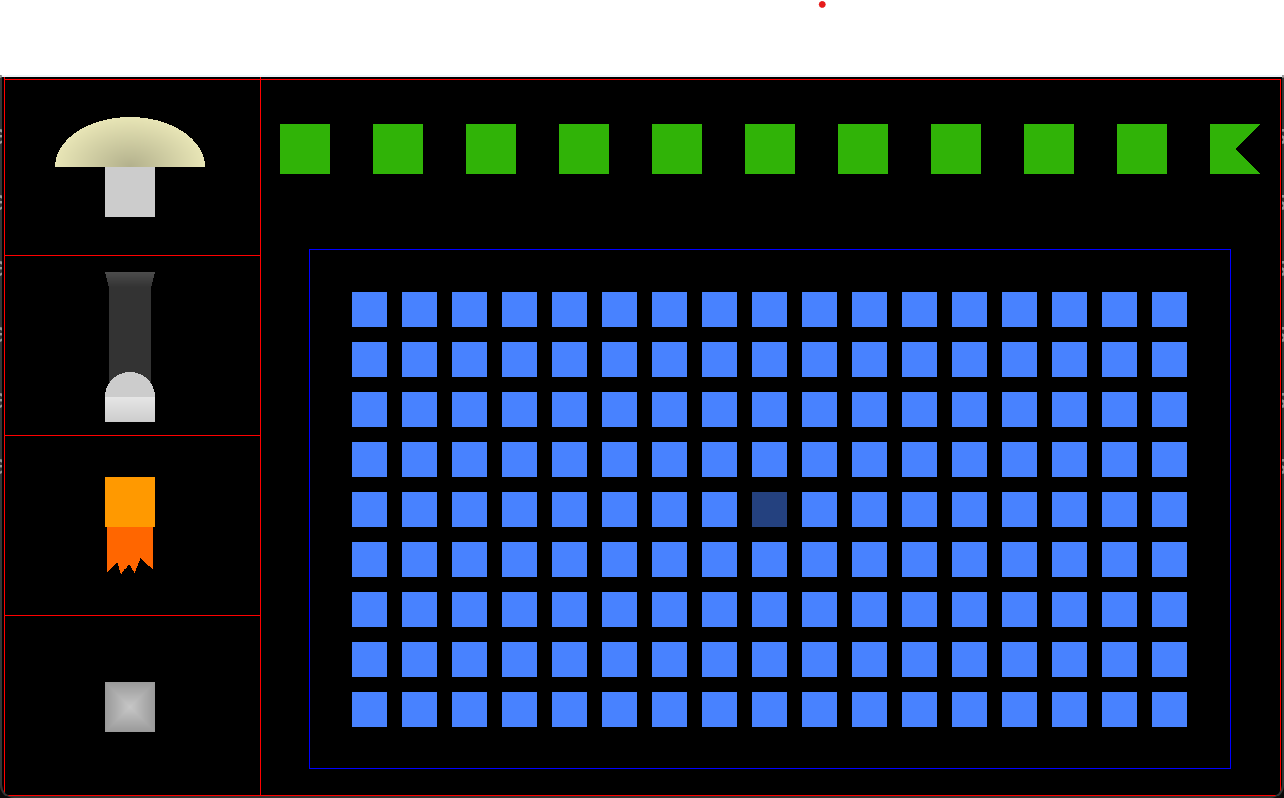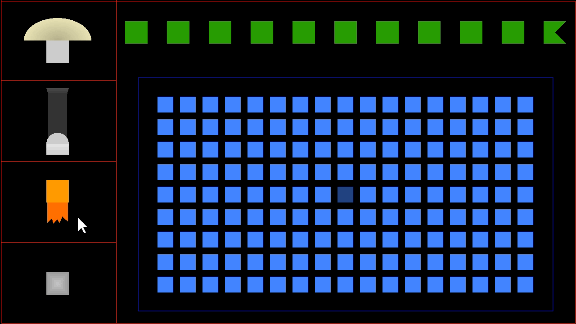 Comportament de bază jucător: Nava jucătorului se mișcă stânga-dreapta și folosind Space va trage din tunurile sale proiectile. Viteza jucătorului depinde de numărul de blocuri de tip motor prezente în vehicul.