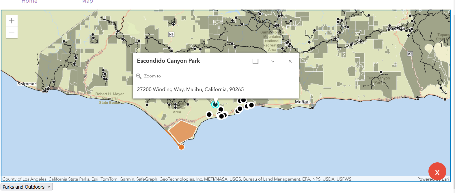 Rulați aplicația web realizată cu Angular și JavaScript API pe baza template-ului din laborator. Verificați funcția de rutare între două puncte negre, capete de traseu (trailheads) pe hartă.