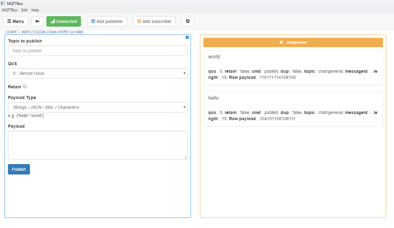 BROKER = "isilab.cloud.shiftr.io" PORT = 1883 USERNAME = "isilab" PASSWORD = "oonhdB7qBZrPK2Lf" TOPIC = "chat/general"