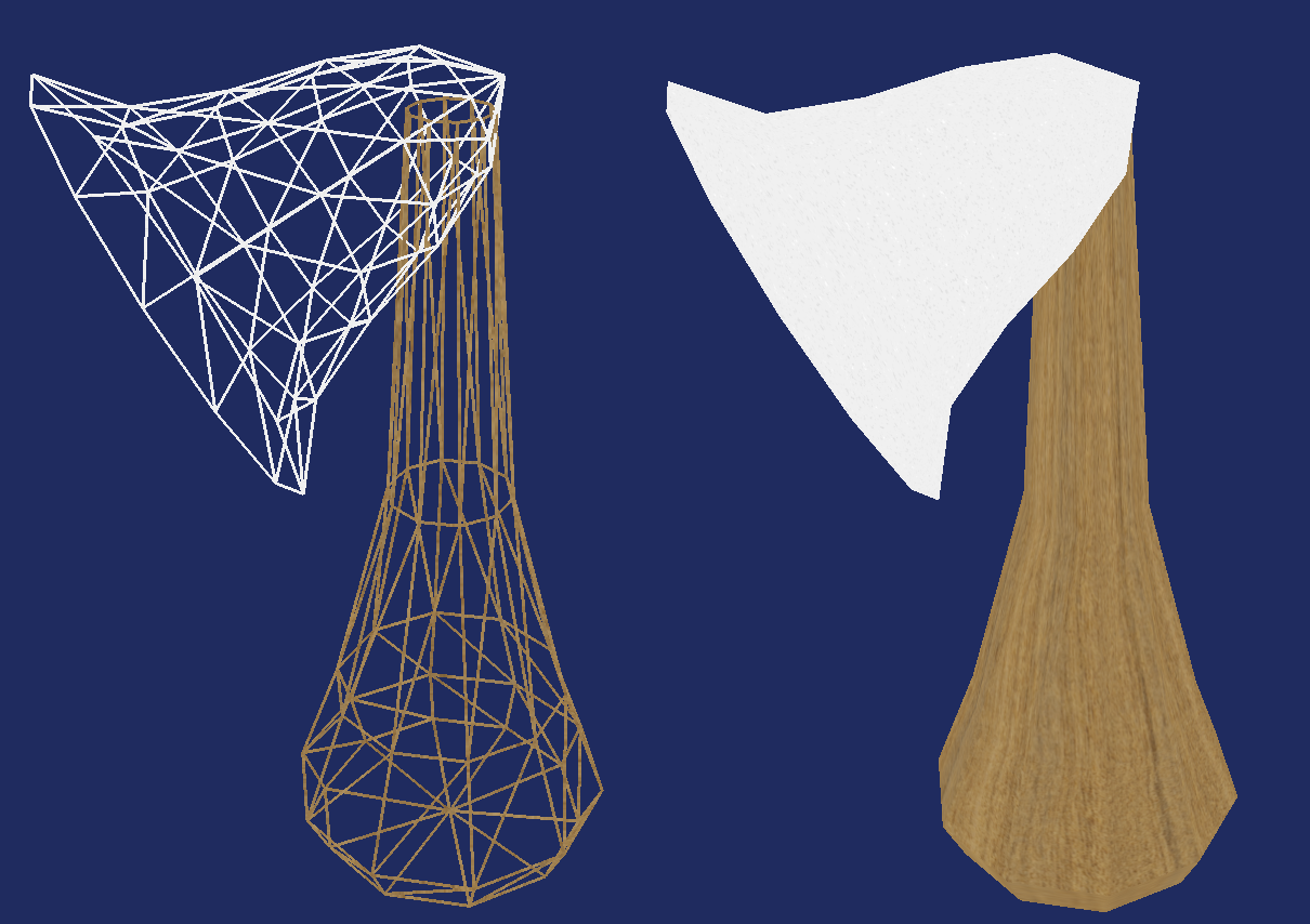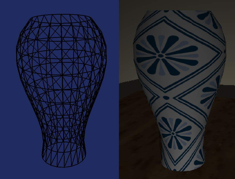 Ecranul televizorului este o suprafață de rotație de 180° (deci rotim suprafața doar într-un semicerc). Acestă suprafață este scalată inegal, pe axa transversală cu un factor de 0,2. Din cauză că modelul este scalat inegal trebuie calculate normalele după această scalare. Alternativ se pot calcula vârfurile în mod obișnuit și pe urmă acestea vor fi transformate cu o matrice de modelare. Normalele vor fi transformate folosind inversa transpusei matricei de modelare.