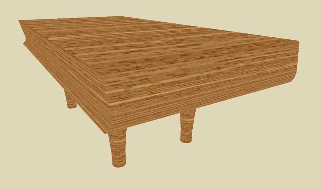 Masa este formată dintr-un blat și patru picioare. Picoarele sunt suprafețe de rotație.