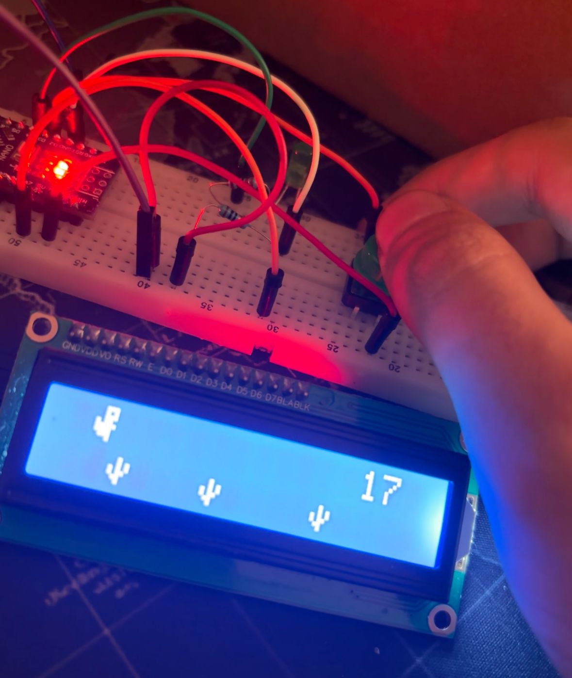 proiectul implementează jocul Chrome Dino pe o placă Arduino (folosind un ecran LCD, se vor simula acțiunile de joc, cum ar fi săriturile peste obstacole)