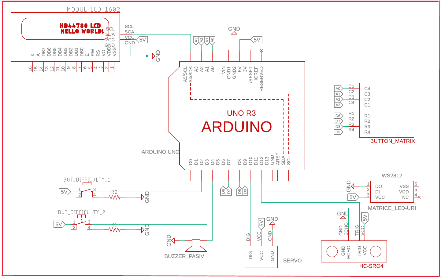 My_pins.h contine alocarea de pini pentru cele 2 matrice si pentru butoanele separate, iar LCD-ul si buzzer-ul care sunt folosite in paralel cu celelalte functionalitati, au functiile definite in Buzzer_lcd.cpp