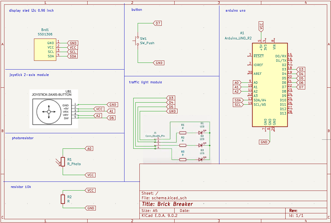 Pentru realizarea acestui proiect am folosit mai multe componente hardware care lucreaza impreuna pentru a face jocul sa functioneze corect. In centrul sistemului se afla placa Arduino Uno, care controleaza toate celelalte module. Pentru controlul paletei am folosit un joystick KY023, care trimite semnale analogice catre Arduino in functie de miscarea pe axa X. Aceste semnale sunt interpretate si paleta este mutata stanga-dreapta pe ecran.