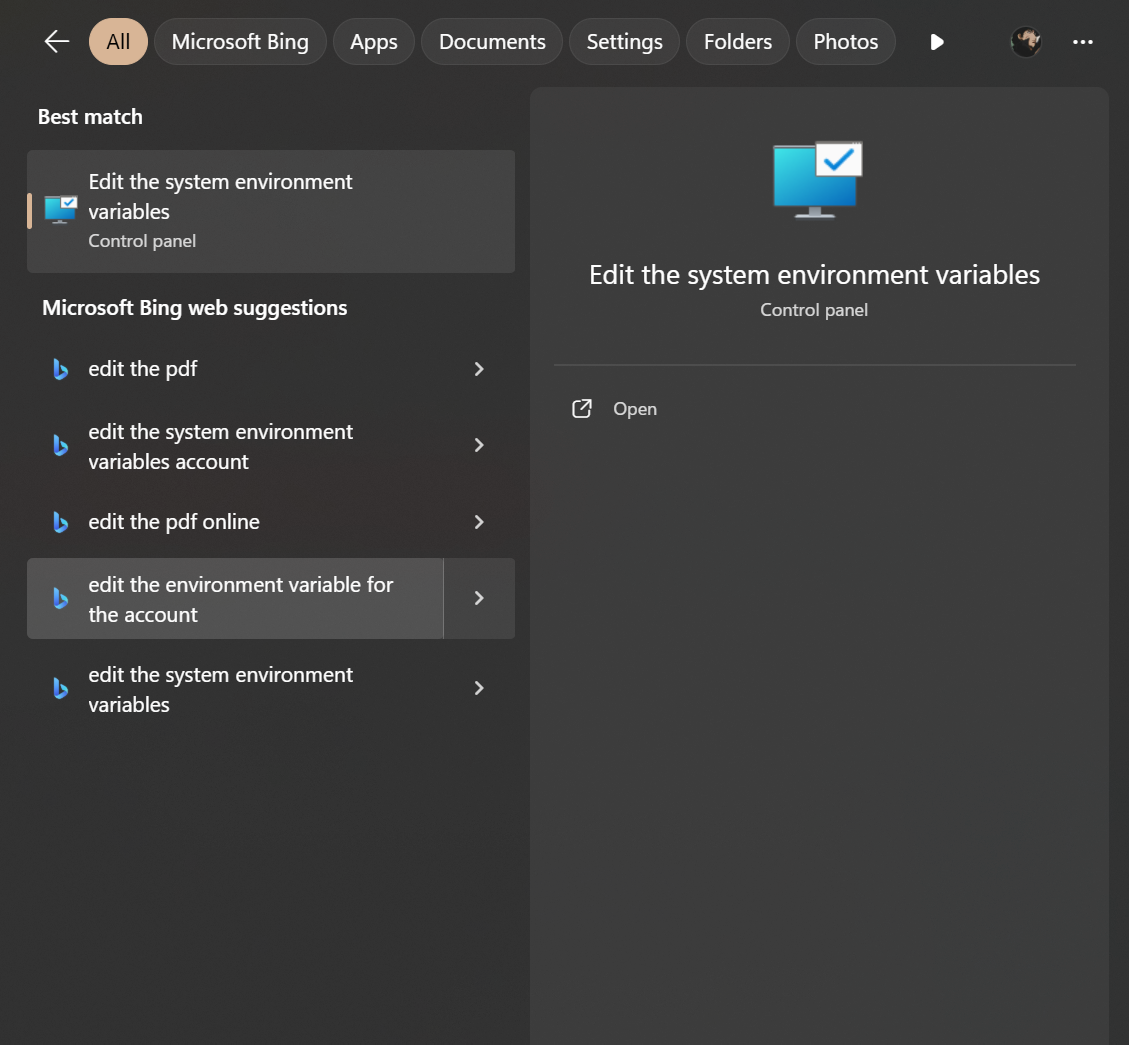 4. Apăsați tasta de windows și căutați Edit the system environment variables:
